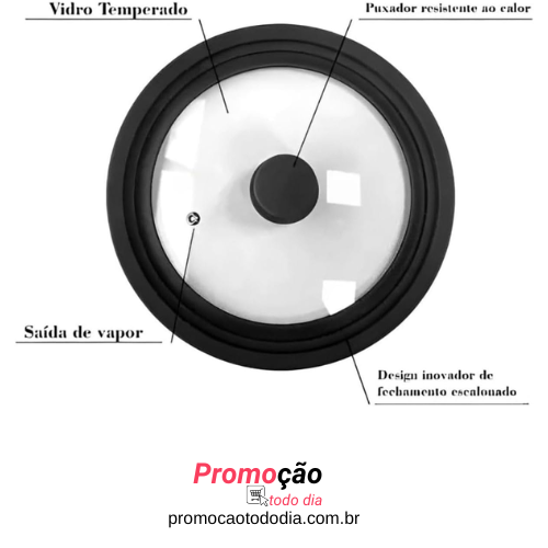 Vidro Temperado Resistente – Permite visualizar os alimentos durante o cozimento sem precisar levantar a tampa.