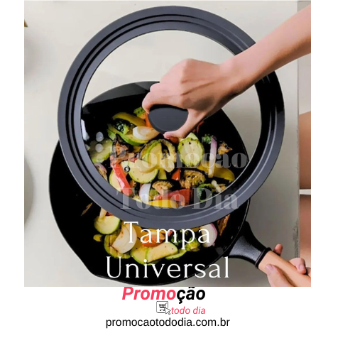 Tampa Universal de Vidro com Borda de Silicone Preta e Puxador – 24, 26 e 28 cm Premium A Tampa Universal de Vidro é a solução ideal para quem busca praticidade na cozinha. Compatível com panelas, frigideiras e caçarolas de 24 cm, 26 cm e 28 cm, seu design moderno e funcional garante mais segurança e eficiência no preparo das suas receitas.